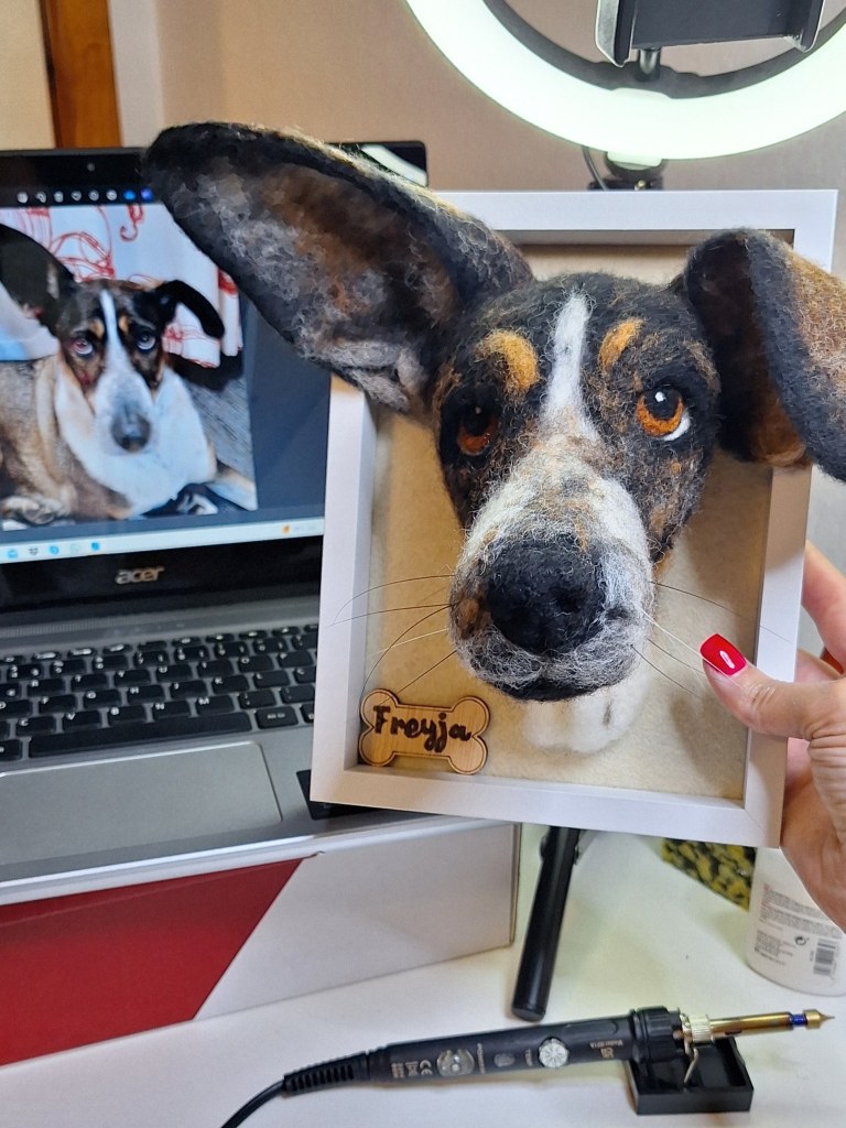 Quando recebo uma nova encomenda, é comum que me enviem várias fotografias acompanhadas de pequenas descrições das características que tornam aquele animal tão especial. São esses detalhes que contam a história: o olhar doce, a posição das orelhas quando a dona chega a casa, o dentinho torto que aparece quando recebe mimos com satisfação. Cada gesto, cada expressão, carrega sentimentos que só quem os vive compreende.